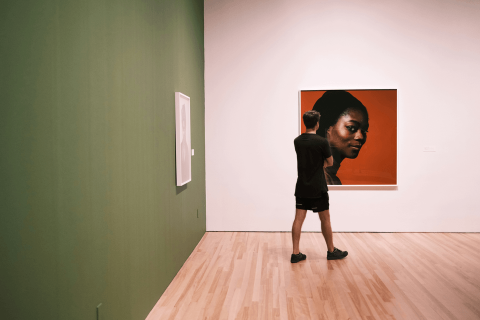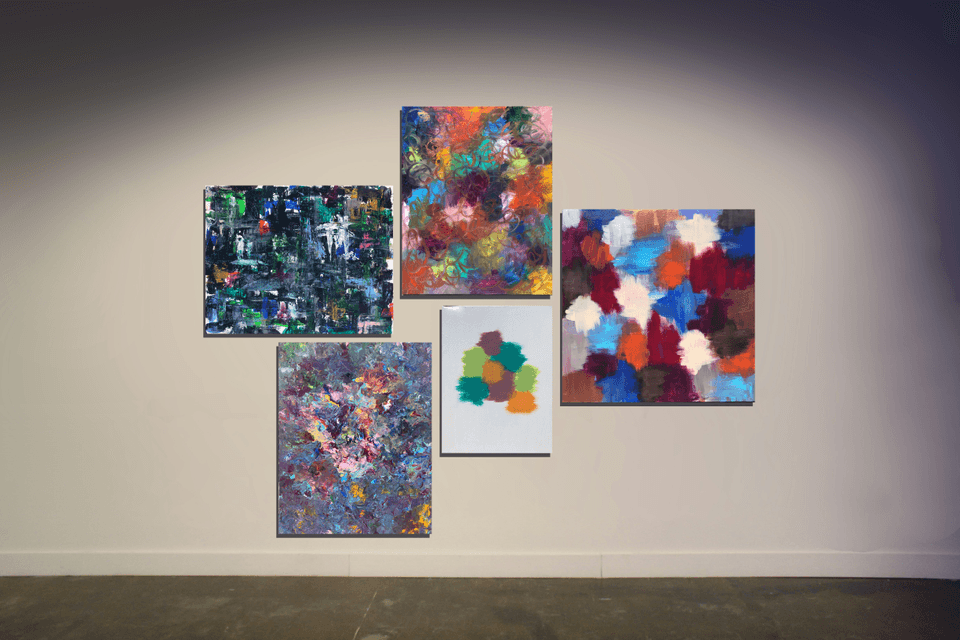 Francesca Mollett is a contemporary artist known for her abstract paintings that explore light, surface, and spatial perception. Her work responds to architectural space and evolves through a fluid yet precise painting process.